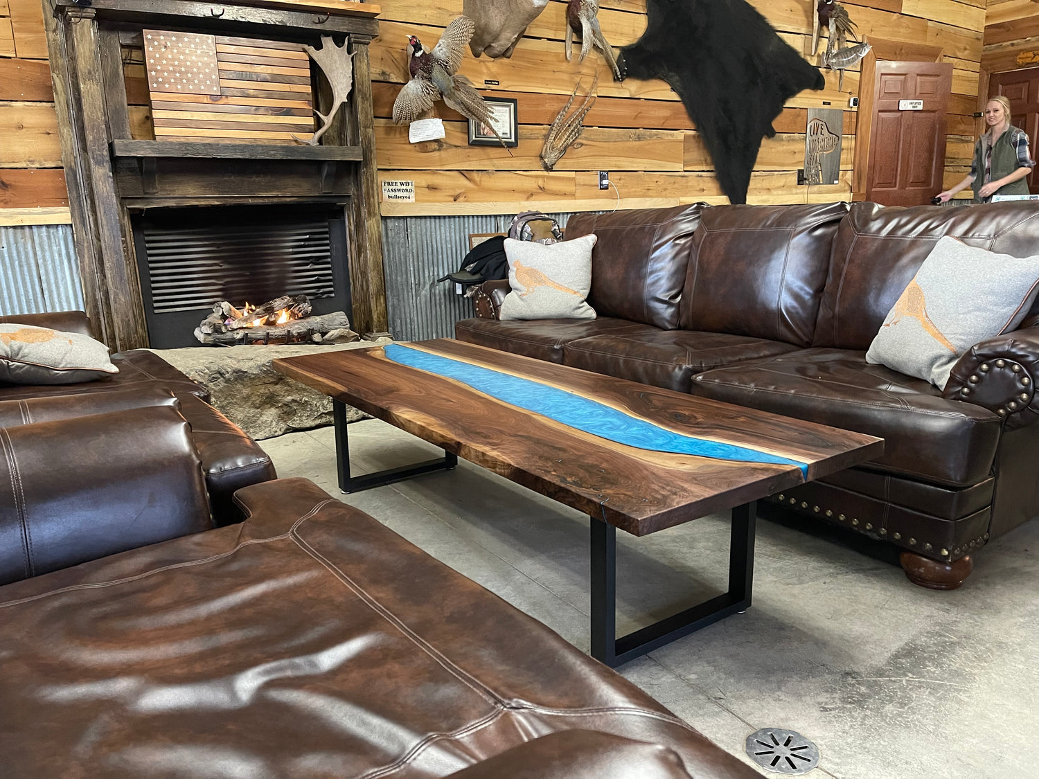 This beautiful walnut and epoxy river table was commissioned for a local hunting lodge. A perfect fit!