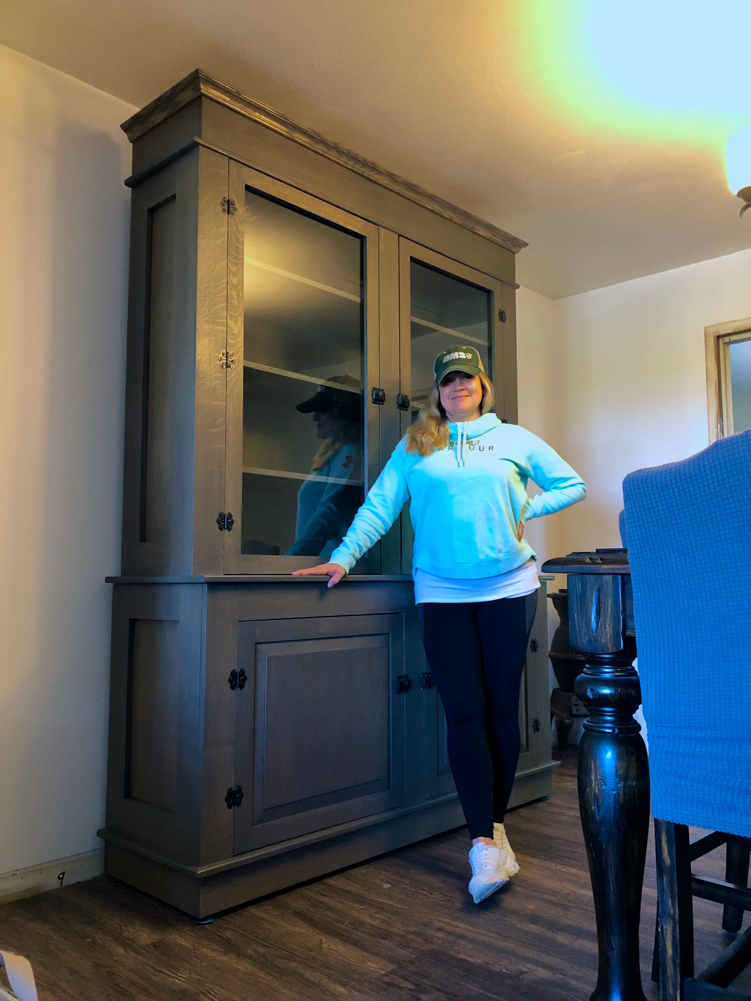 Custom designed by us, and built from locally harvested Quartersawn White Oak, this massive custom hutch has a perfect home in a local Farmhouse style dining room. This build also features period correct hardware and custom tempered glass.